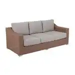 En romslig og elegant 3-seters sofa som passer perfekt på både terrasse og i hage. Sofaen har en lett, men solid ramme i rustfritt aluminium og er kledd i håndflettet kunstrotting i en varm naturtone. De myke putene i beige spunnet polyester gir god komfort og er laget for å tåle utendørs bruk – stoffet tørker raskt, er UV-bestandig og vannavvisende. Trekkene kan tas av og vaskes ved behov. Et flott valg for deg som ønsker en avslappet og stilfull uteplass.