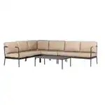 Opplev en ny nivå av komfort og avslapning med den elegante sofagruppen som gir en følelse av luksus til utemiljøet ditt. Denne gruppen består av en romslig hjørnesofa og et matchende bord, alt for å skape det perfekte stedet for samvær med venner og familie. Sofaen i denne sofagruppen er både romslig og komfortabel, noe som gjør den til det ultimate stedet å samles og nyte varme sommerkvelder eller avslappende helger utendørs. Med plass til mange, kan du enkelt invitere dine nære og kjære for herlige stunder sammen. Det beige stoffet gir sofaen en tidløs og avslappet estetikk som smelter harmonisk inn i omgivelsene dine. Den svarte stålrammen gir sofaen og bordet en moderne kontrast og en følelse av eleganse. Bordet, med sine generøse mål på 120x70 cm, tilbyr god plass til servering og komfortabel plass til drikke og snacks. For å gjøre opplevelsen enda mer komfortabel, inkluderes 11 myke puter til sofaen. Skap et herlig sted å slappe av, være sammen og skape minner. Den kombinerer både stil og funksjonalitet og vil bli navet i utelivet ditt. Velg denne sofagruppen og nyt luksusen av uteliv med stil.
