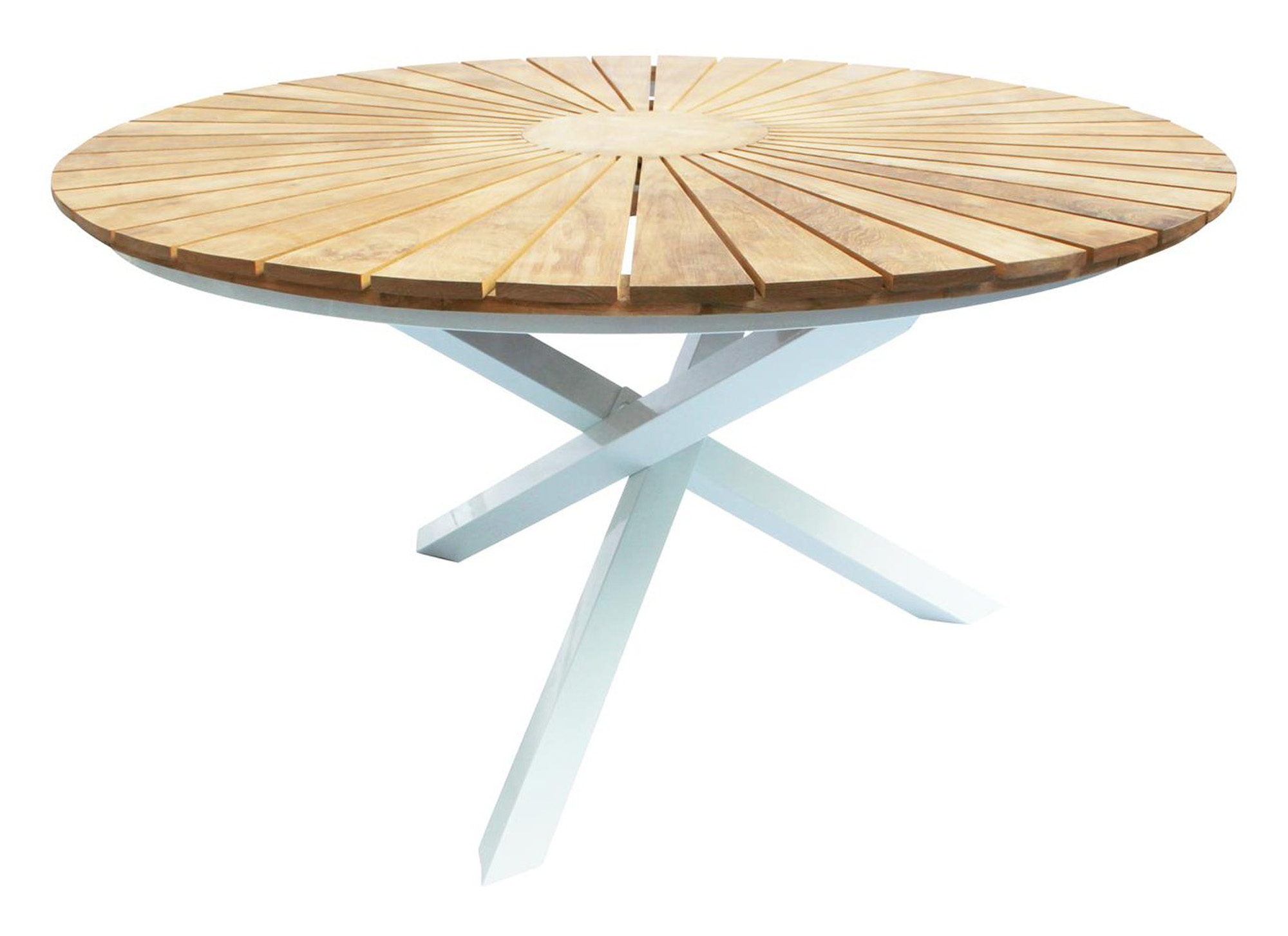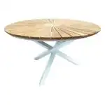 Ett väldigt välgjort och vackert stort runt bord som vi är jätteglada för. Vi har köpt till 6st korgstolar och de får precis plats att ställa in under när bordet inte används. (Korgstolar av annat fabrikat)