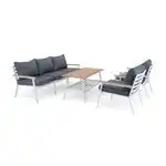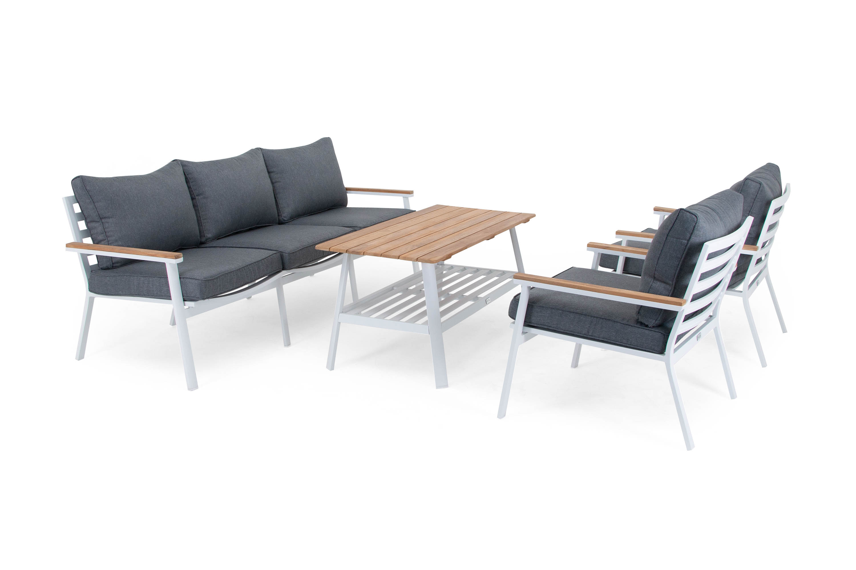 Brasilia sofagruppeHvit/teak3-seter sofa, 2st lenestoler & bord
